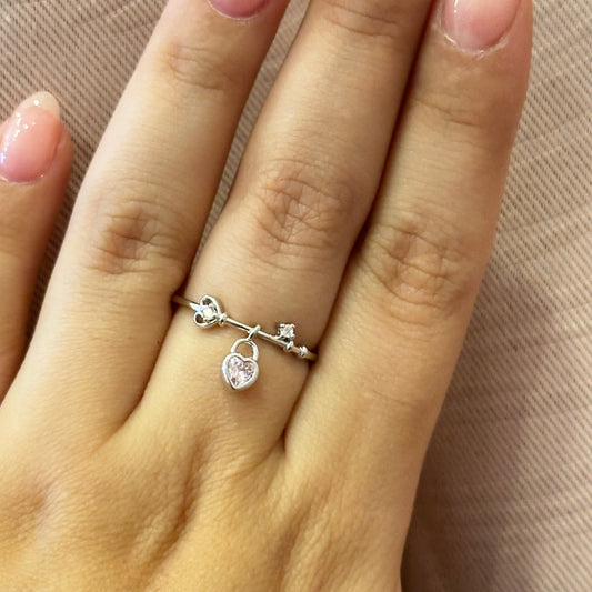 Anillo de llave con corazón colgante