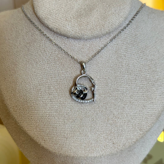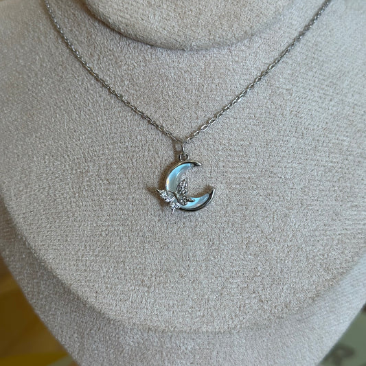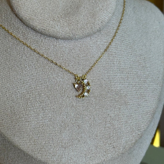 Cadena plata media luna con corazón