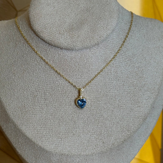 Cadena plata corazón celeste
