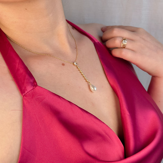 Cadena de escote con brillos y perla