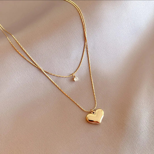 Cadena doble de corazón y brillito