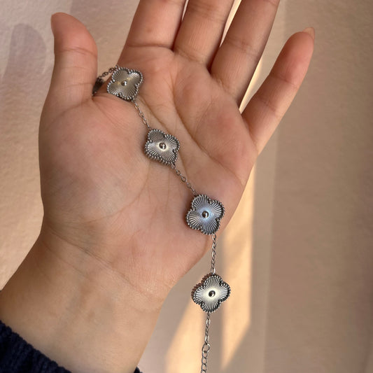 AgotadoPulsera trébol color plateada