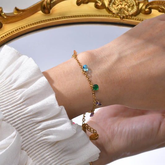 Pulsera con cristales colgantes de colores