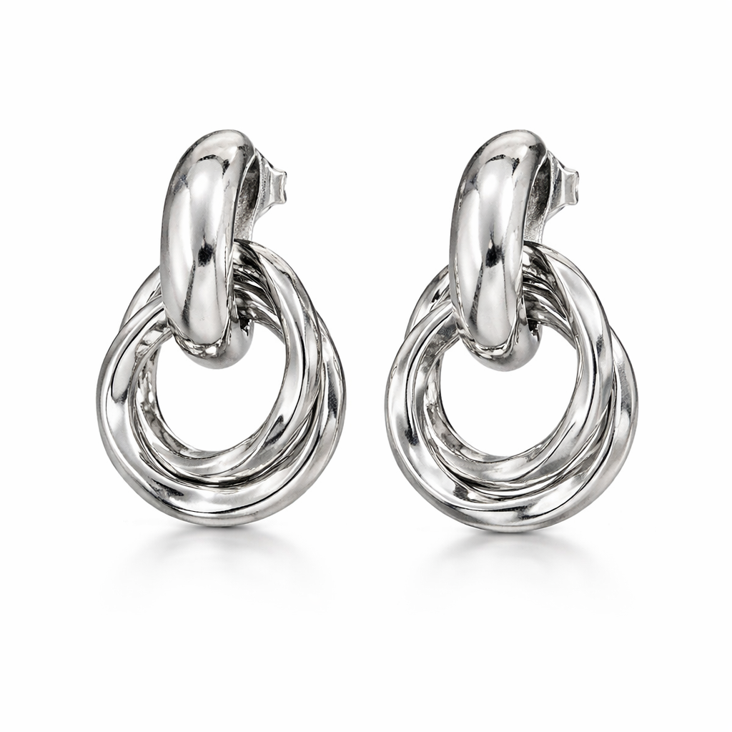 Arete Dos Círculos Abajo Plateados