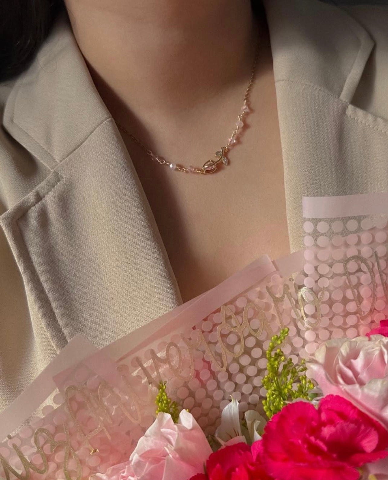 Acero inoxidable + Cristales +Dije en enchape de oro