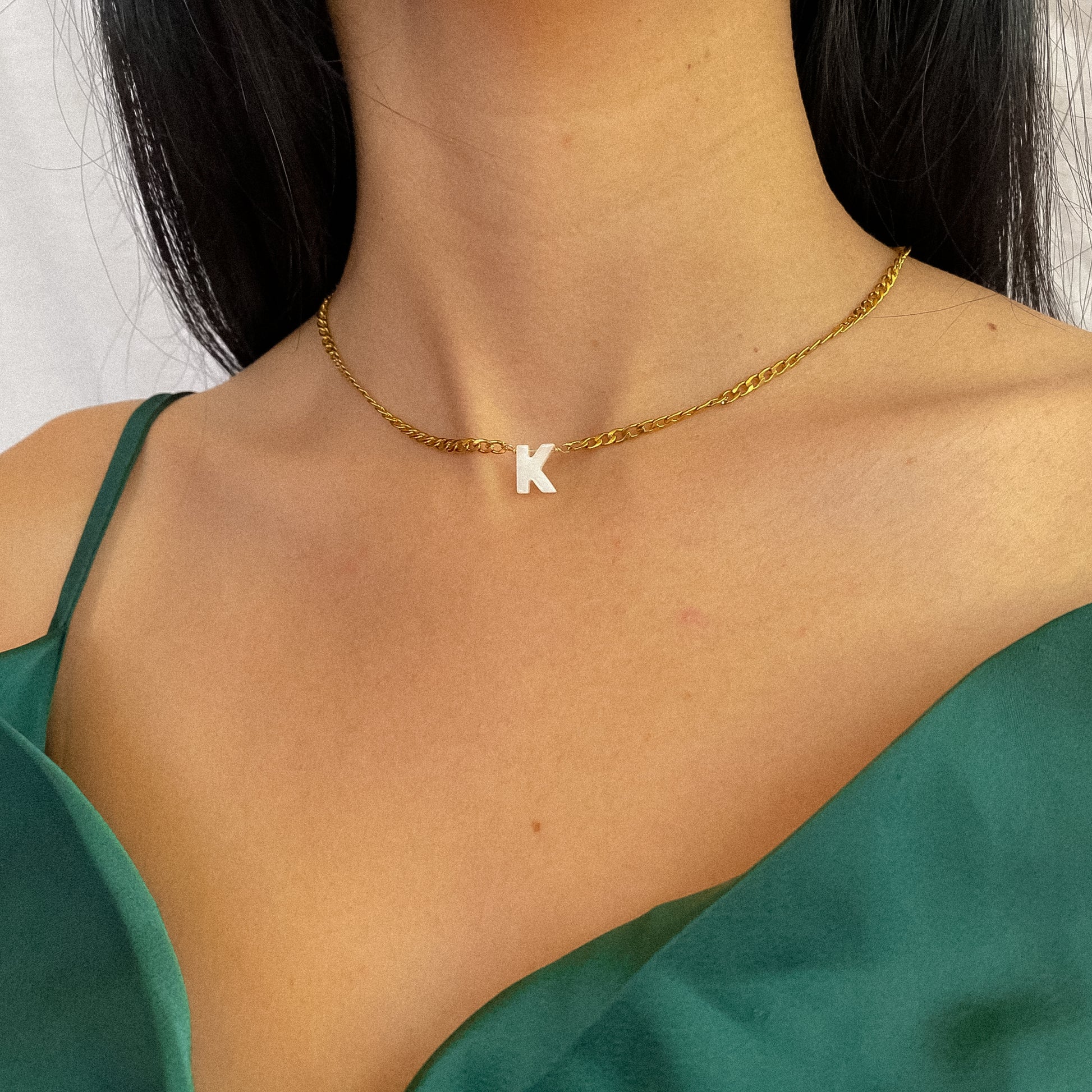 Cadena de acero inoxidable + Letra de concha nácar